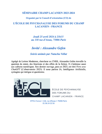 Nous interrogerons ces questions selon différents discours, celui de la psychanalyse avec des collègues de l’EPFCL mais également ceux d'autres champs avec des invités extérieurs.