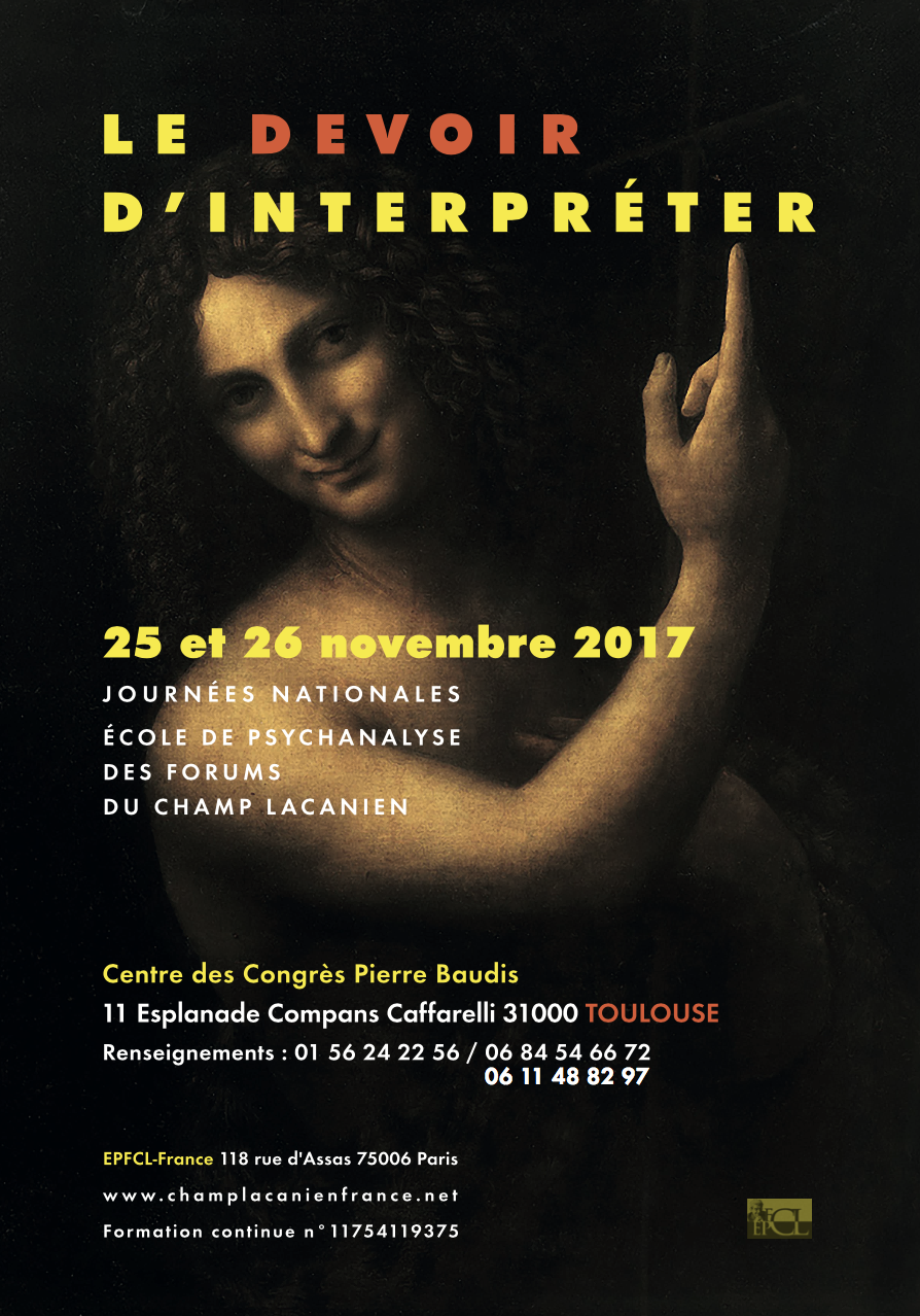 L’analyste, quand il interprète, ne saurait s’autoriser d’aucune norme – à commencer par celle théorique de l’Œdipe. Il s’agira dans ces Journées nationales de mettre au travail ces questions éminemment cliniques et éthiques soulevées par l’interprétation, en tant qu’elle engage la responsabilité du psychanalyste et le convoque au point de son acte.