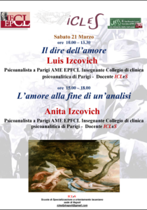 À Naples où ils sont invités par ICLeS, Luis Izcovich donnera une conférence ayant pour titre : « Il dire dell’amore » et Anita Izcovich : « L’amore alla fine di un’analisi ».