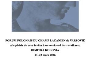 Dominique Fingermann est invitée pour un intense week-end de travail avec le forum polonais. Elle donnera plusieurs conférences dont les titres sont : « Quelle liberté selon la psychanalyse ? » et « L’analyste ne s’autorise que de lui-meme (et de quelques autres) ? »