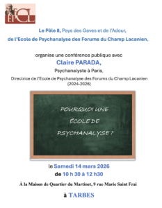 Claire Parada interviendra à Tarbes autour de la question : « Pourquoi une école de psychanalyse ? »