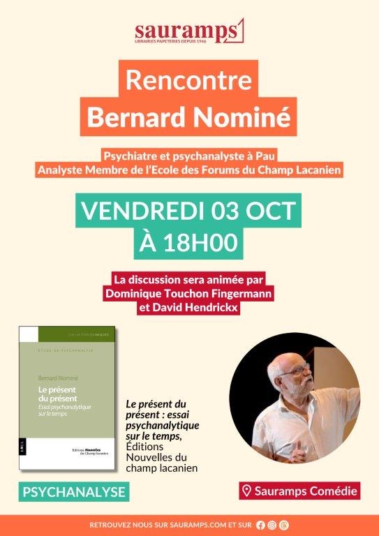 Conférence de Bernard NOMINÉ (psychiatre – psychanalyste à Pau) avec débat à partir de questions amenées par des membres du pôle