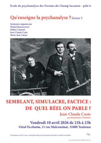 Le pôle 6 de l’Ecole des Forums du Champ Lacanien vous invite à participer à un atelier clinique, clinique orientée par la psychanalyse. Cet atelier propose un espace de parole dans lequel les participants pourront présenter des vignettes cliniques qui seront ensuite mises à la discussion. Des psychanalystes seront invités, faisant office de +1. Atelier […]