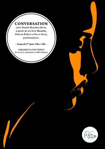 TOULOUSE – Samedi 27 juin 2026 de 14h à 16h Conversation entre Dimitri Rouchon Borie, à partir de son livre Mouette, Patricia Robert et Pierre Perez, psychanalystes Librairie Floury Frères, 36 rue de la Colombette, 31000 Toulouse