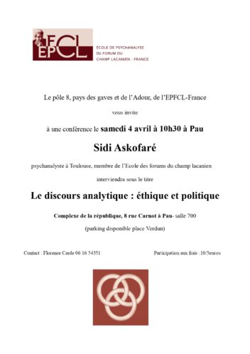 « Le discours analytique : éthique et politique » Conférence de Sidi Askofaré